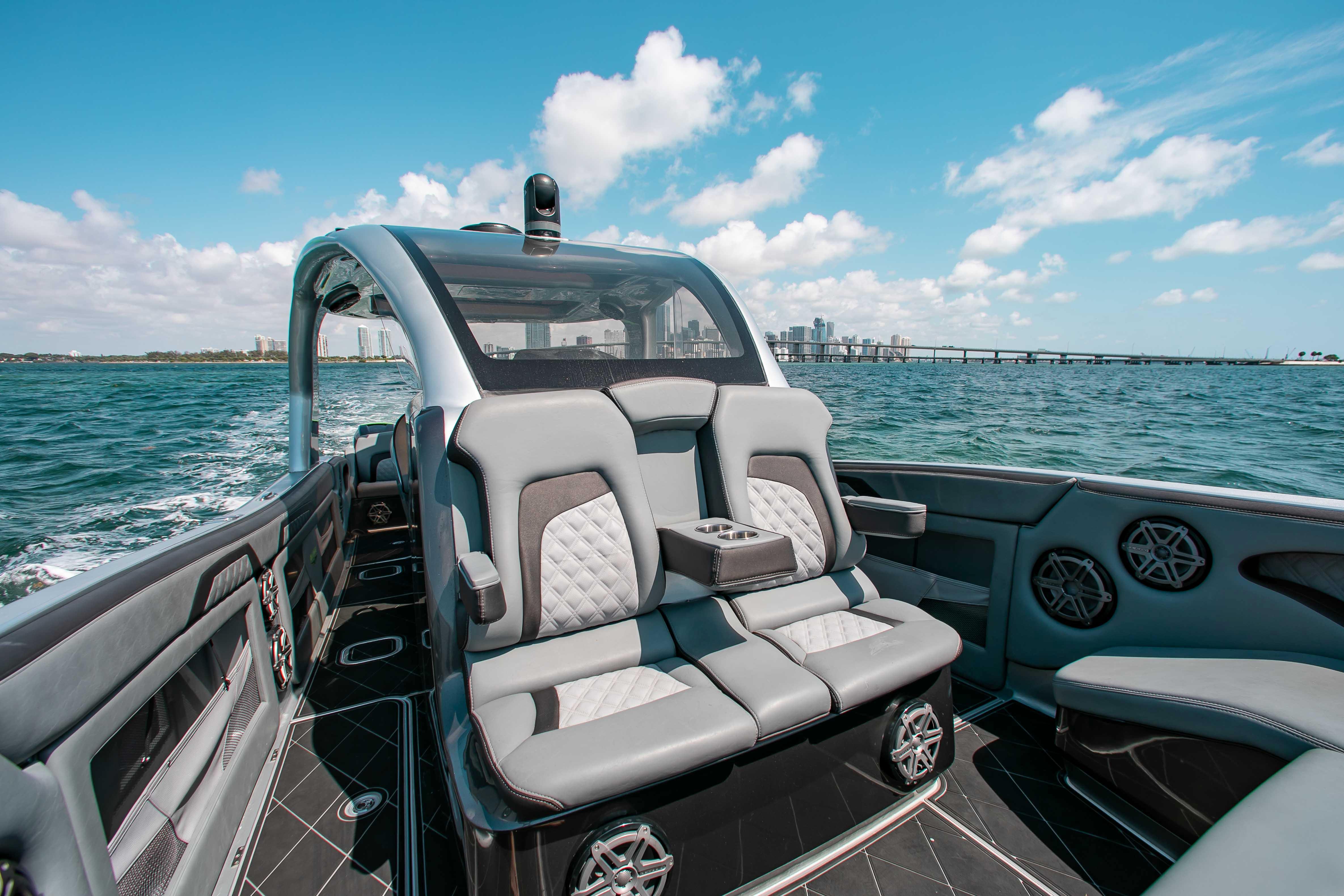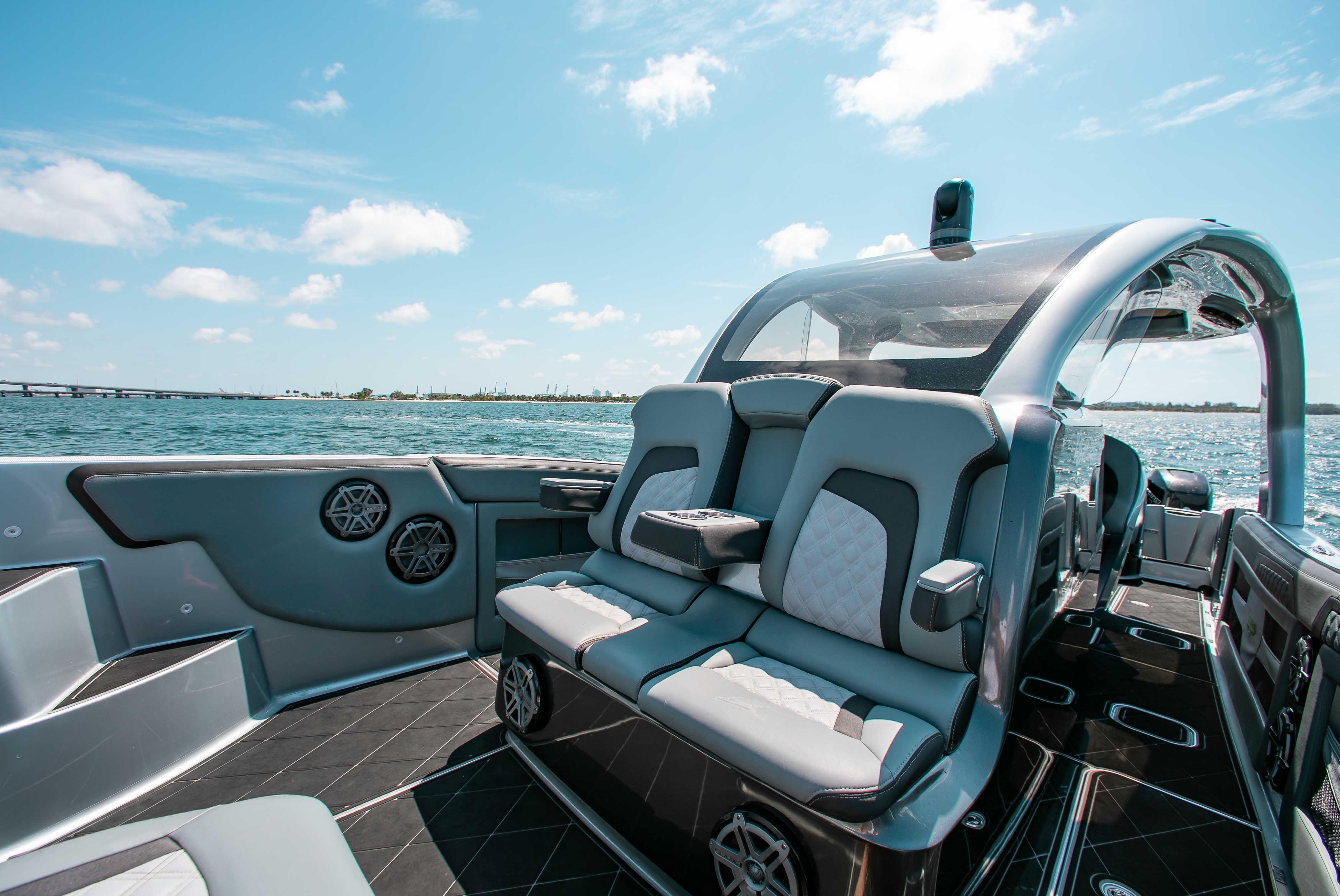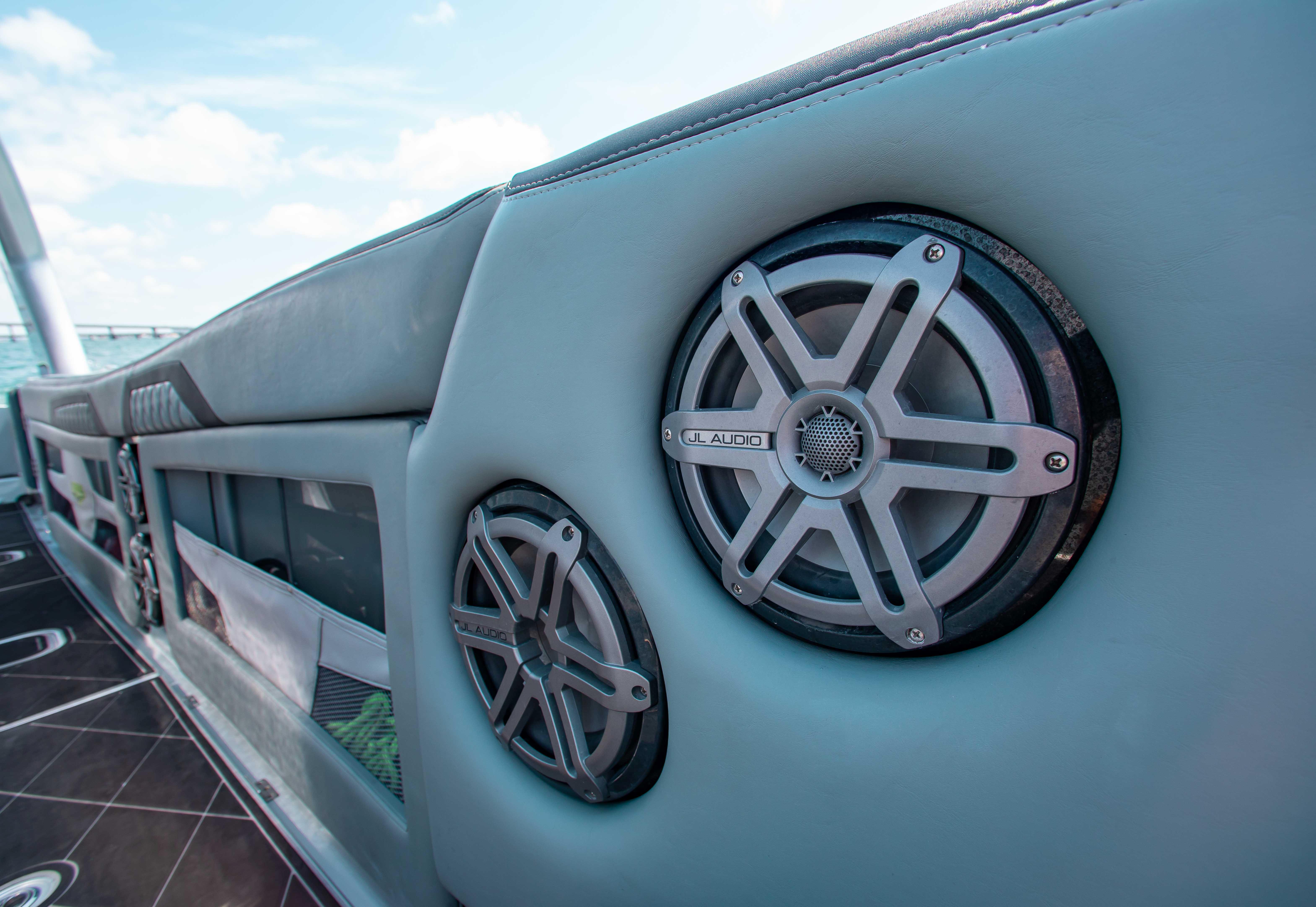 - Sixteen - JL Audio M880-CCX-SG-TB - 8.8"; throughout vessel gunwales, console; overhead