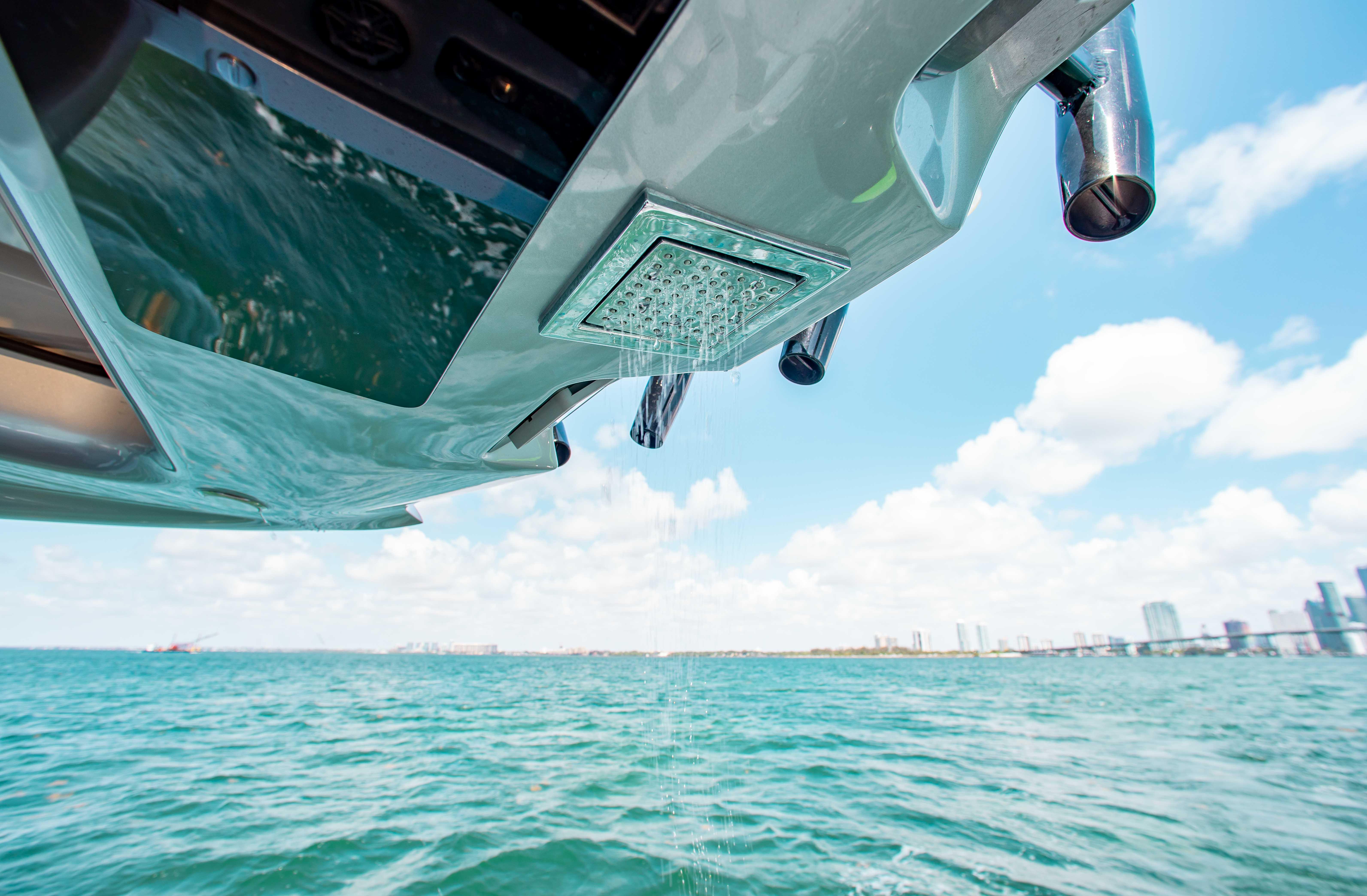 retractable shower wand, a cockpit overhead shower fixture center aft, multi-color programmed